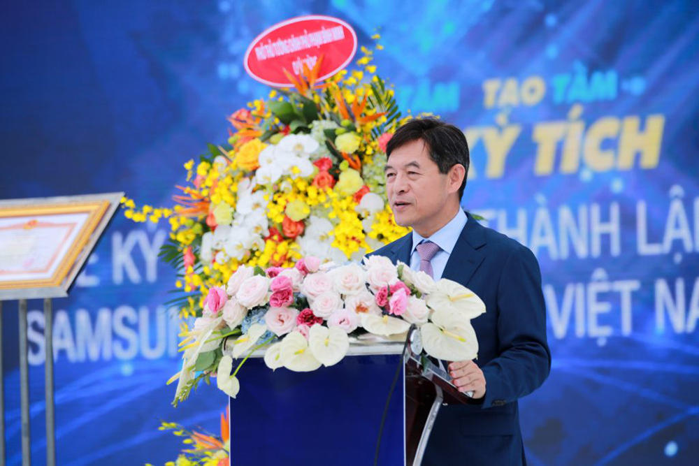 Ngài Koh Dong Jin, Tổng Giám đốc Samsung Điện tử Toàn cầu phát biểu chúc mừng Samsung Electronics Việt Nam